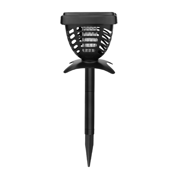 Attira insetti e zanzare con una luce LED UV in una griglia ad alta tensione che li uccide immediatamente. É alimentata da una batteria ricaricabile tramite il pannello solare integrato, presente nella parte superiore del dispositivo. La luce ha una carica di circa 8 ore. La lampada può essere posizionata con la sua base su una superficie piana, può essere appesa grazie al manico in metallo oppure installata nel terreno attraverso un tubo montabile, compreso nella confezione.