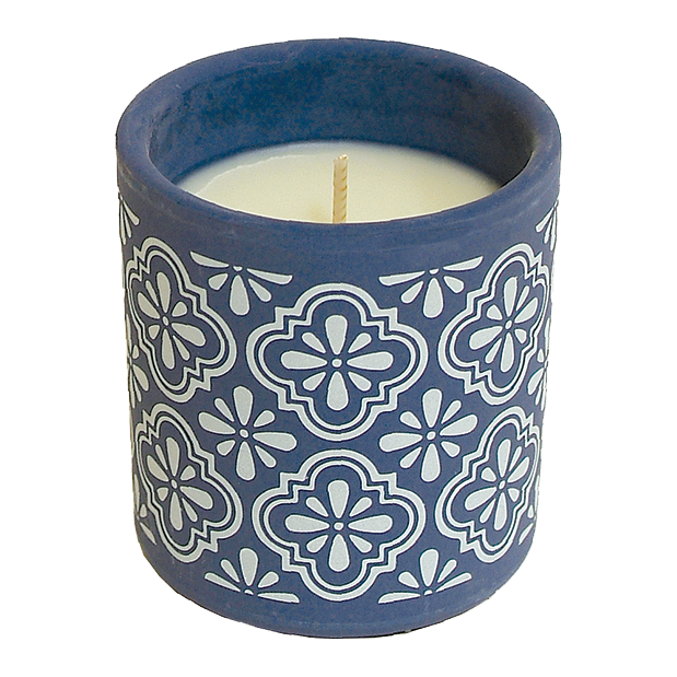 BICCHIERE IN TERRACOTTA CON CANDELA AL GERANIOLO
